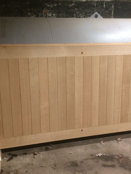 Naast de brievenbus hebben we ook een badkamermeubel laten maken in eik. We vinden het fijn dat we een uniek stuk hebben , op maat en volledig naar onze wensen gemaakt.