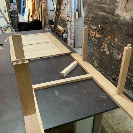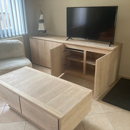 Dressoirkast en bijzettafel met schuiven in eik